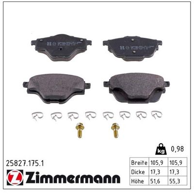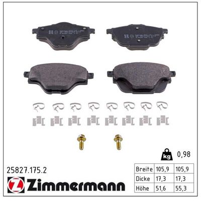 ZIMMERMANN 25827.175.2 Bremsbelagsatz, Scheibenbremse