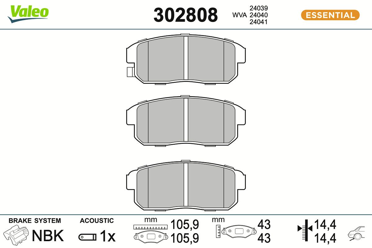 VALEO Bremsbelagsatz, Scheibenbremse 302808 ESSENTIAL