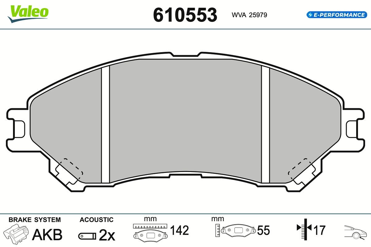 VALEO Bremsbelagsatz, Scheibenbremse 610553 E-PERFORMANCE