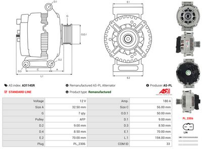 AS-PL Generator A3114SR Wiederaufbereitet AS