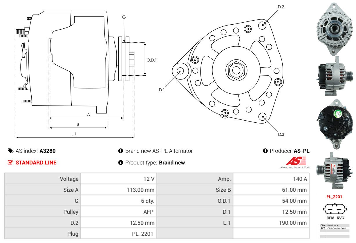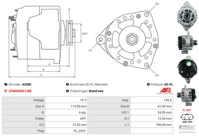 AS-PL Generator A3280 Brandneu AS-PL