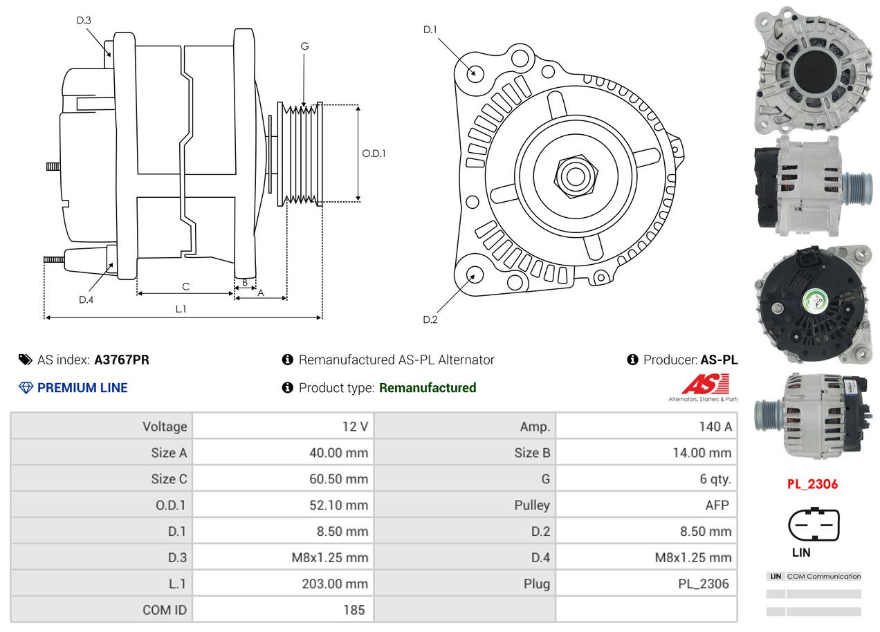 AS-PL Generator A3767PR Wiederaufbereitet AS