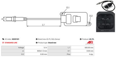 AS-PL NOx-Sensor, Harnstoffeinspritzung NOX9181 Brandneu AS-PL