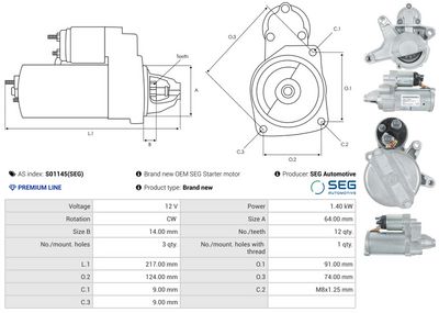 AS-PL Starter S01145(SEG) SEG Automotive