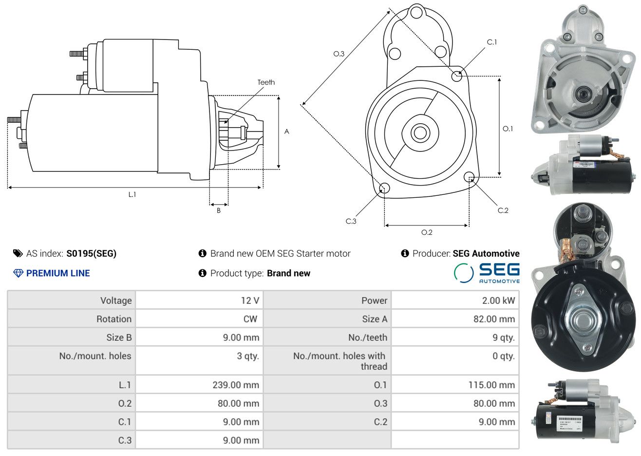 AS-PL Starter S0195(SEG) SEG Automotive