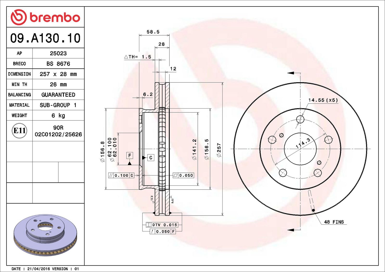 BREMBO Bremsscheibe 09.A130.10 PRIME LINE