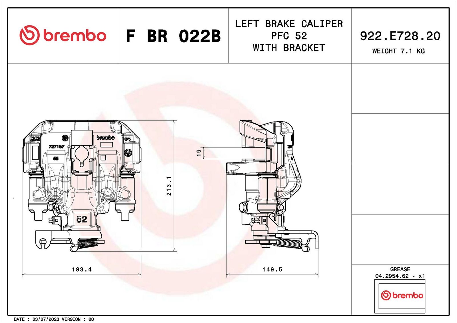 BREMBO Bremssattel F BR 022B PRIME LINE - With Brackets
