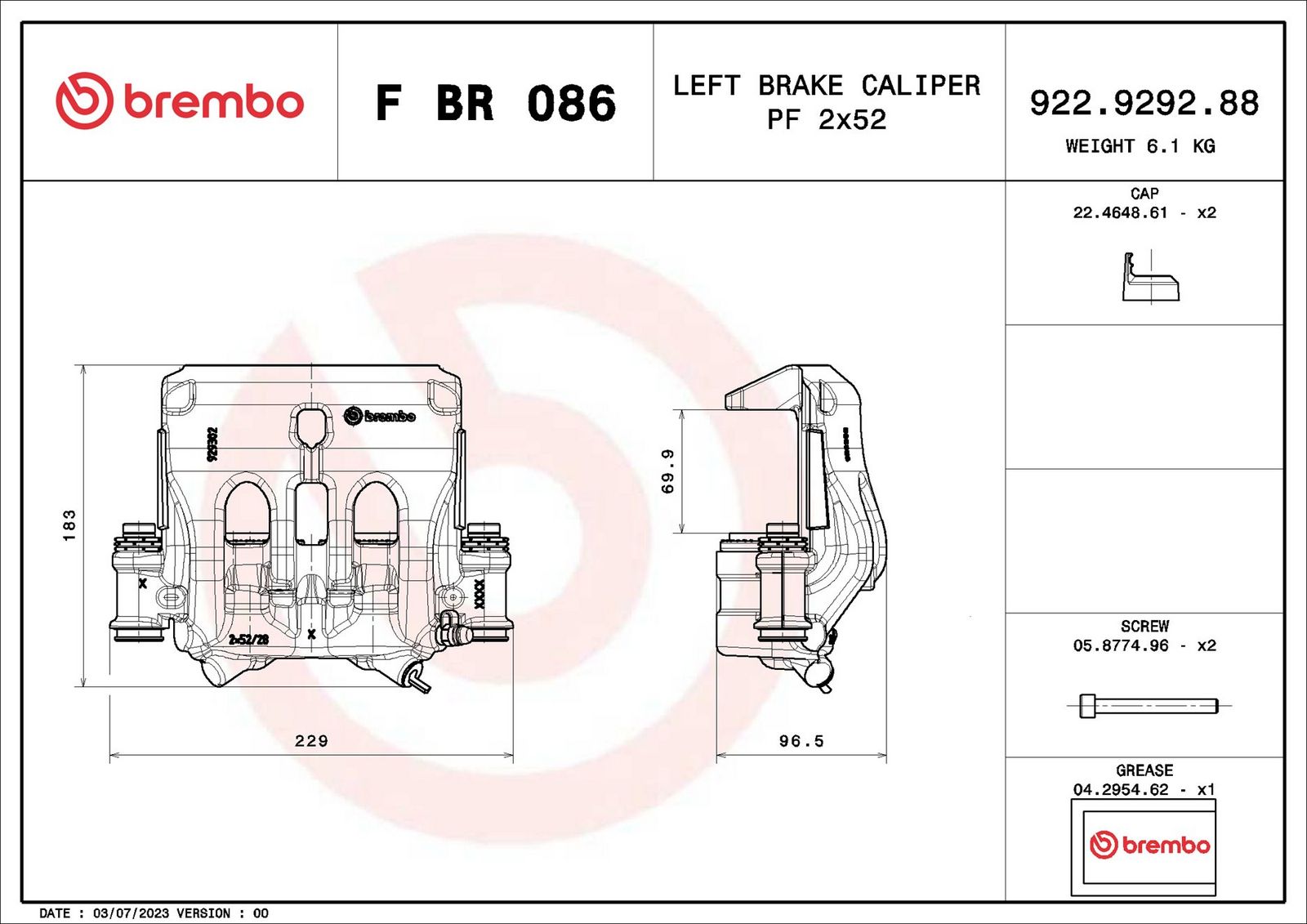 BREMBO Bremssattel F BR 086 PRIME LINE