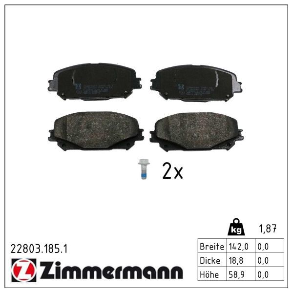 ZIMMERMANN Bremsbelagsatz, Scheibenbremse 22803.185.1