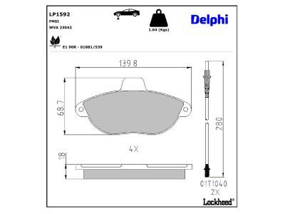 DELPHI Bremsbelagsatz, Scheibenbremse LP1592