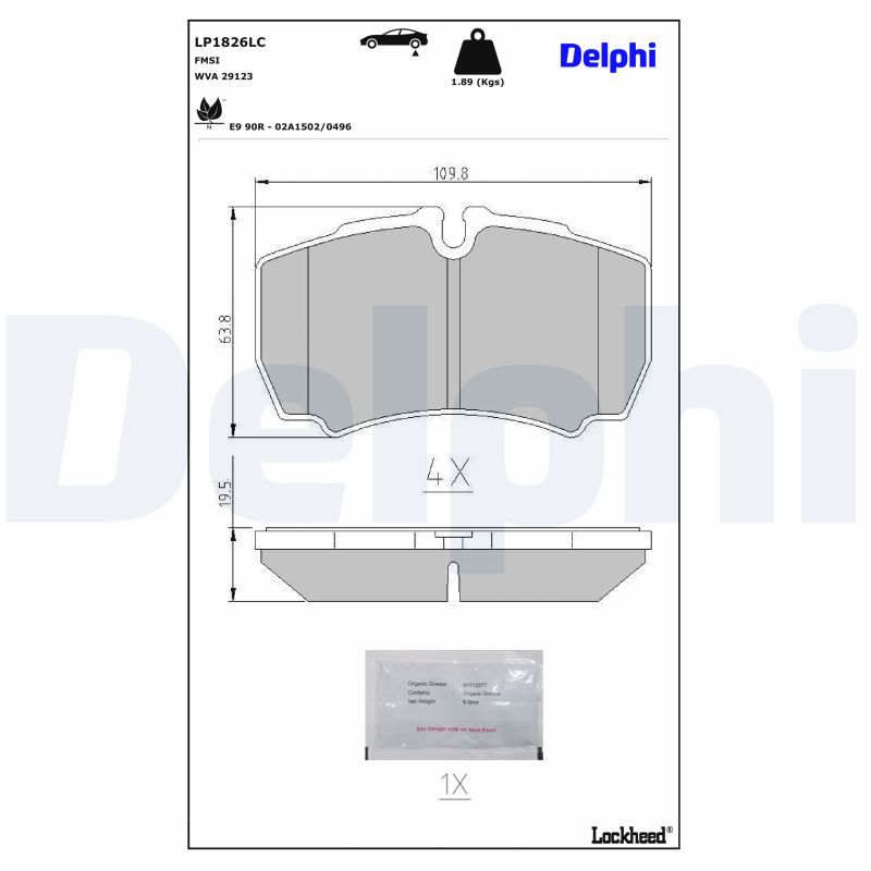 DELPHI Bremsbelagsatz, Scheibenbremse LP1826LC