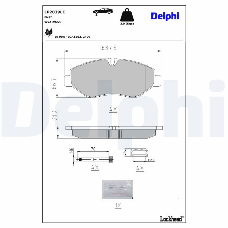 DELPHI Bremsbelagsatz, Scheibenbremse LP2039LC