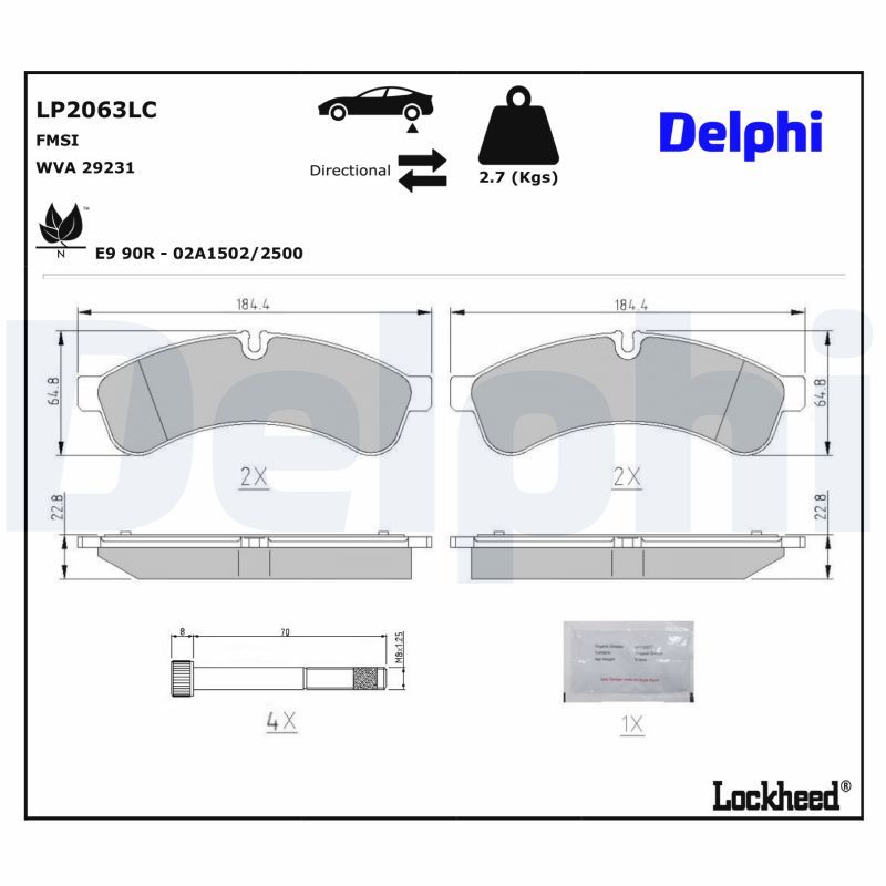 DELPHI Bremsbelagsatz, Scheibenbremse LP2063LC