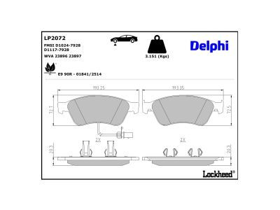 DELPHI Bremsbelagsatz, Scheibenbremse LP2072