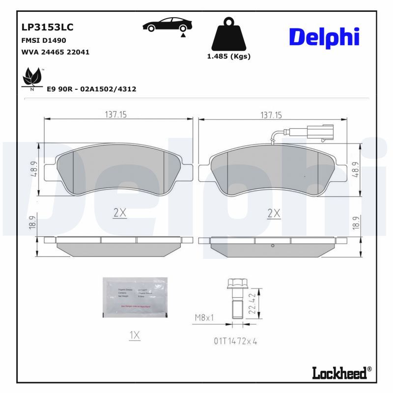 DELPHI Bremsbelagsatz, Scheibenbremse LP3153LC