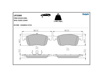 DELPHI Bremsbelagsatz, Scheibenbremse LP3260