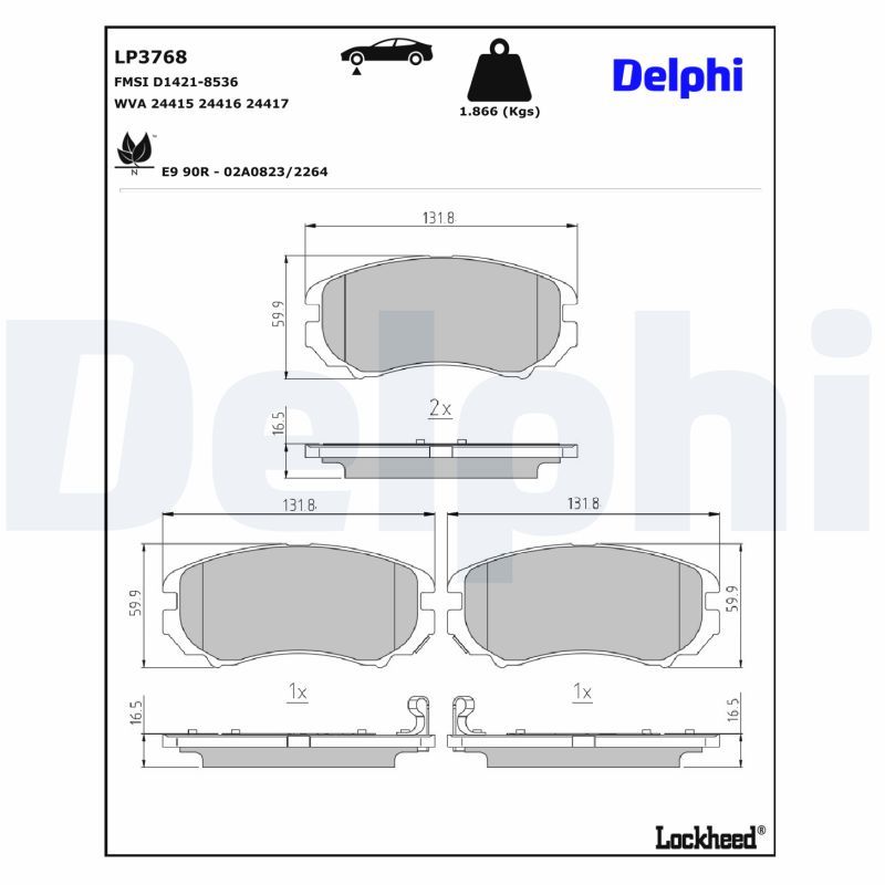 DELPHI Bremsbelagsatz, Scheibenbremse LP3768
